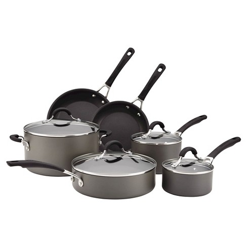 Find Bakeware and Cookware at Target.com! • 10 Piece hard-anodized nonstick set • 2 Skillet • 3 Saucepans with lids • 1 Stockpot with Lid • Durable and dishwasher safe Fill your kitchen with the Circulon Innovatum 10 Piece Hard-Anodized Cookware Set. ... Read More